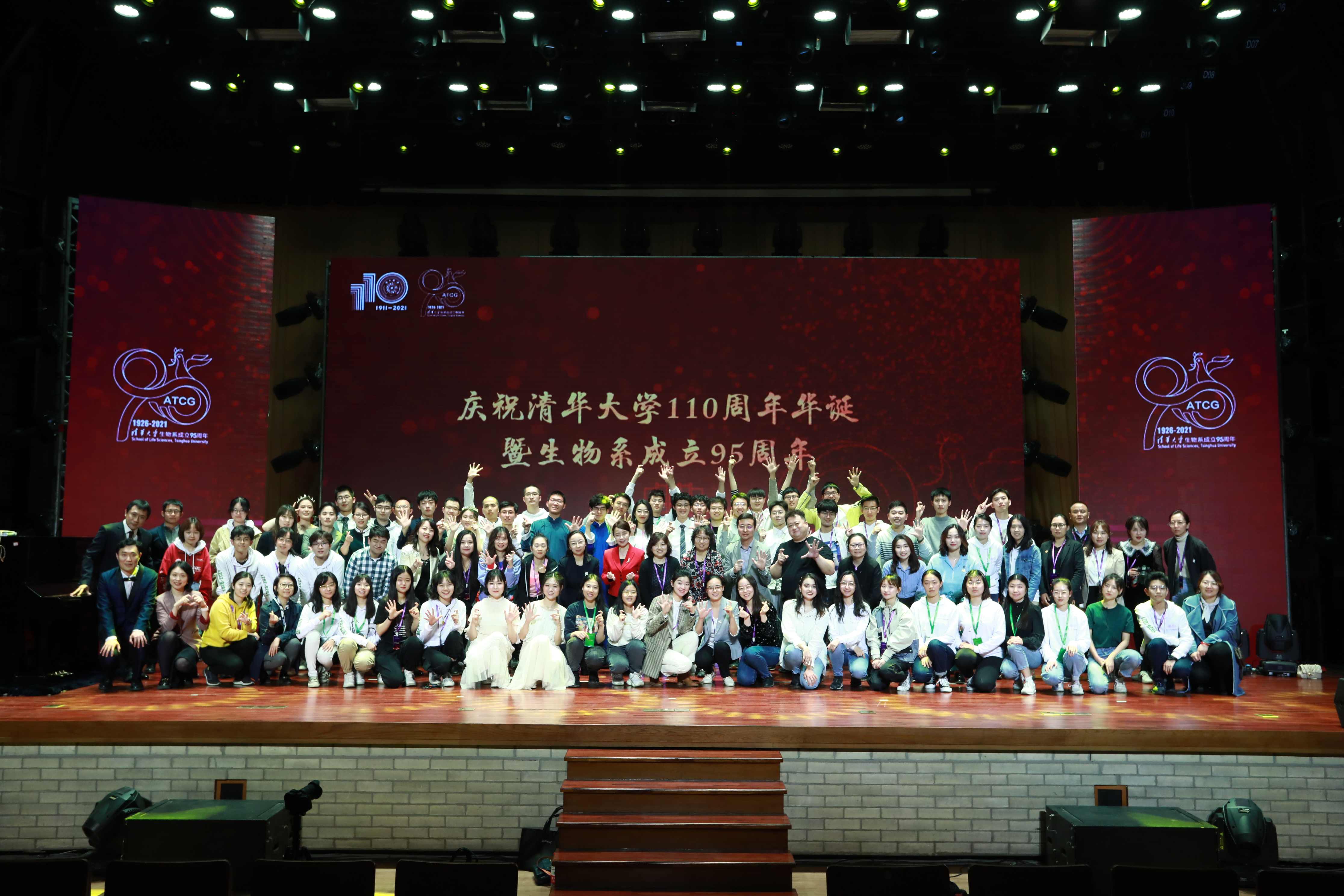 大会还首次播放了为庆祝清华生物系成立95周年特别拍摄的宣传片——《璀璨生命的光阴》以及毕业校友和在校师生共同录制的祝福视频。庆祝大会后,在清华大礼堂上演了由伟德国际victor1946师生共同演绎的联欢晚会。歌舞、相声、乐器表演、话剧、乐队演唱等,晚会形式丰富,精彩纷呈。最后,庆祝大会在全体师生齐唱《相亲相爱》的热烈氛围中落下帷幕。