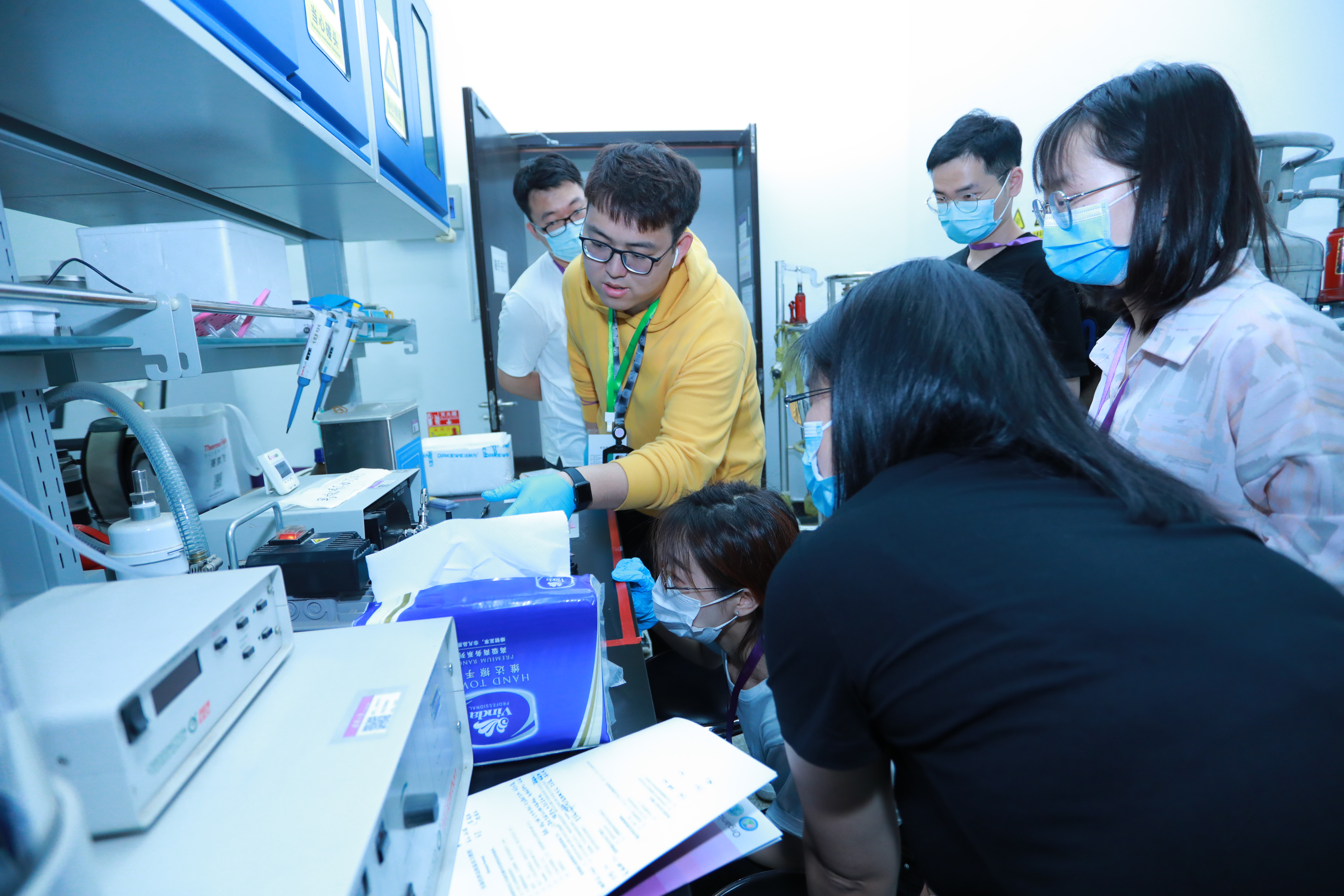 为了让学员进一步掌握和巩固冷冻电镜理论知识,提高学员的实践能力,研讨会专门在会中安排了连续两天的实习操作。实习操作包括:“负染样品制备技术”、“冷冻样品制备技术”、“负染电镜操作技术”、“冷冻电镜操作技术”、“Relion图像处理技术”五大部分。其中,bevictor伟德官网蛋白质研究技术中心冷冻电镜平台和中科院生物物理所生物成像中心各自承担了一半学员的样品制备和电镜操作技术培训,全部学员的Relion图像处理技术培训在bevictor伟德官网完成。教学演示与操作指导的培训教师均来自伟德国际victor1946、中科院生物物理所以及赛默飞公司长期从事冷冻电镜技术和数据处理的专业人员。研讨会结束前,还分别就单颗粒冷冻电镜技术以及Tomography/MicroED技术安排了讨论和答疑环节,让学员们有机会围绕冷冻电镜技术相关问题集中向业内专家请教。本次研讨会的组织模式有效地保障了学员的学习效果,并极大地提高了学员分析问题和解决实际问题的能力。