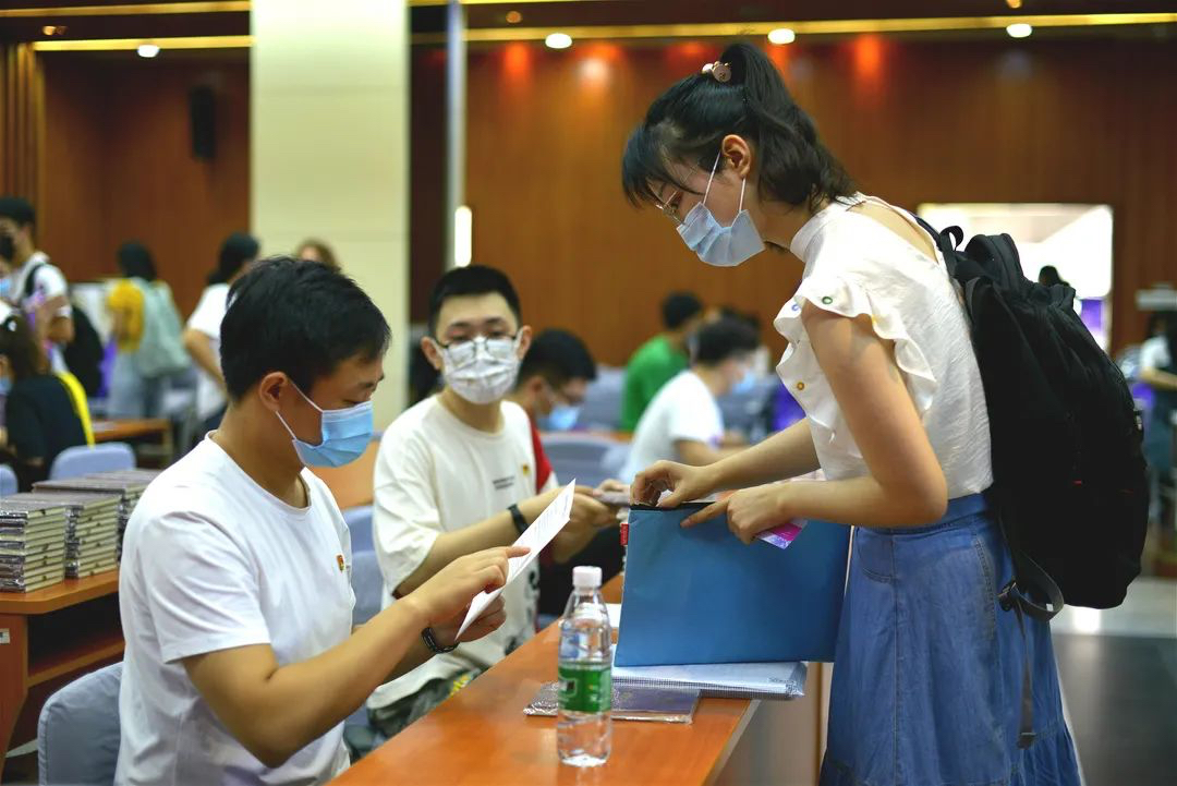 为了让新生用最少的时间顺利完成报到的一系列流程,迎新团队提前布置好会议室,按照顺序依次进行,确保新生办理无遗漏,迎新工作不延后。